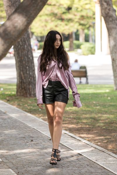 Donna Pantaloncino Pelle Nera Shorts in nappa di agnello. Piccolo risvolto sul fondo. Chiusura con zip a vista sul fianco e tasche laterali. Vestibilità è aderente Contattaci per avere informazioni